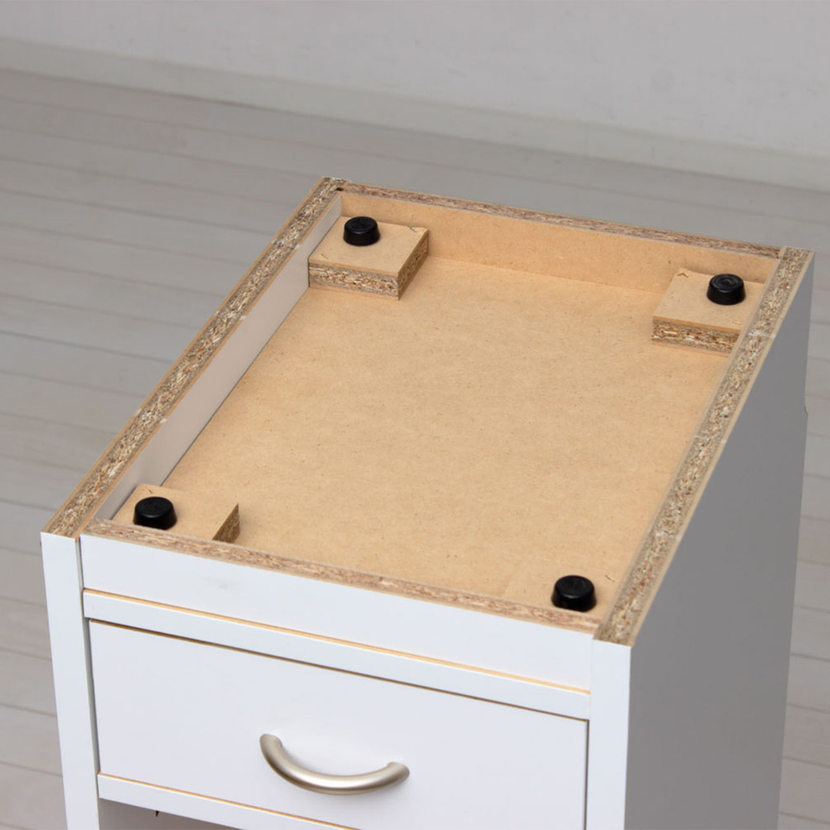 ストック品や小物をしまえる引き出し付きで、すっきり収納することでスペースを有効活用できます。