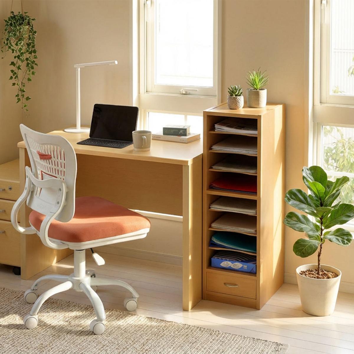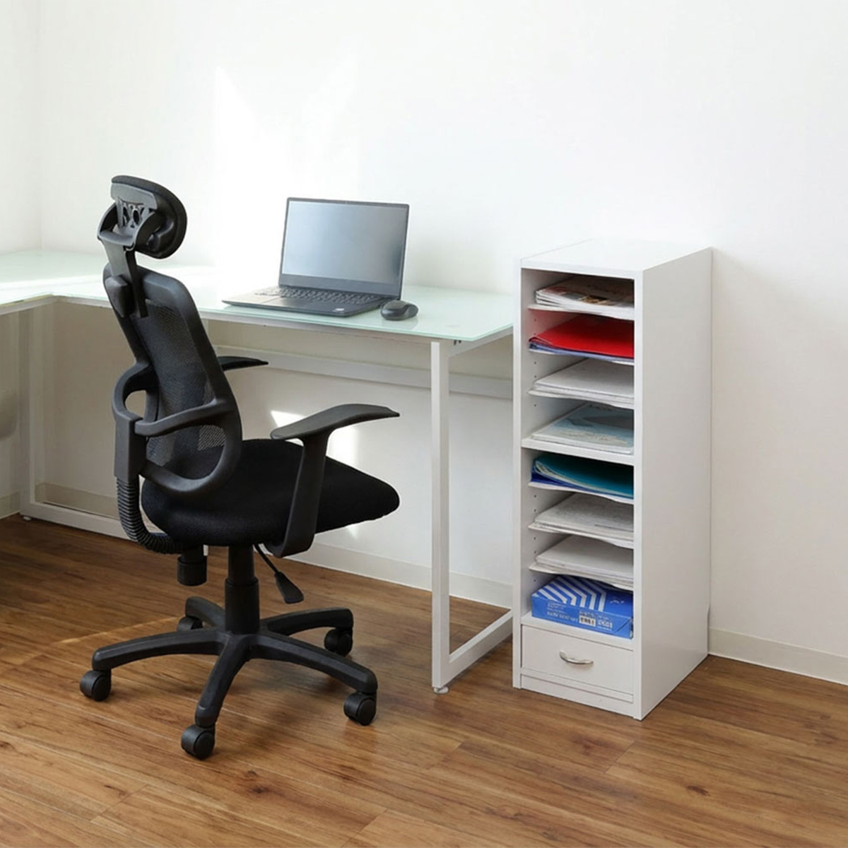 デスク横やちょっとした隙間でもジャマにならず、限られたスペースでもコンパクトに収納が可能で場所を取りません。