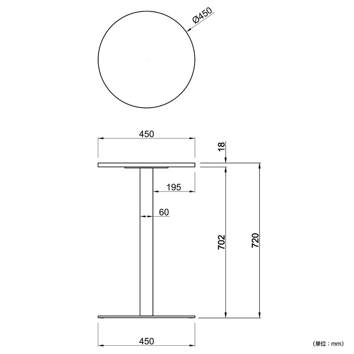 リスタ 丸形カフェテーブル(W450×D450×H720)