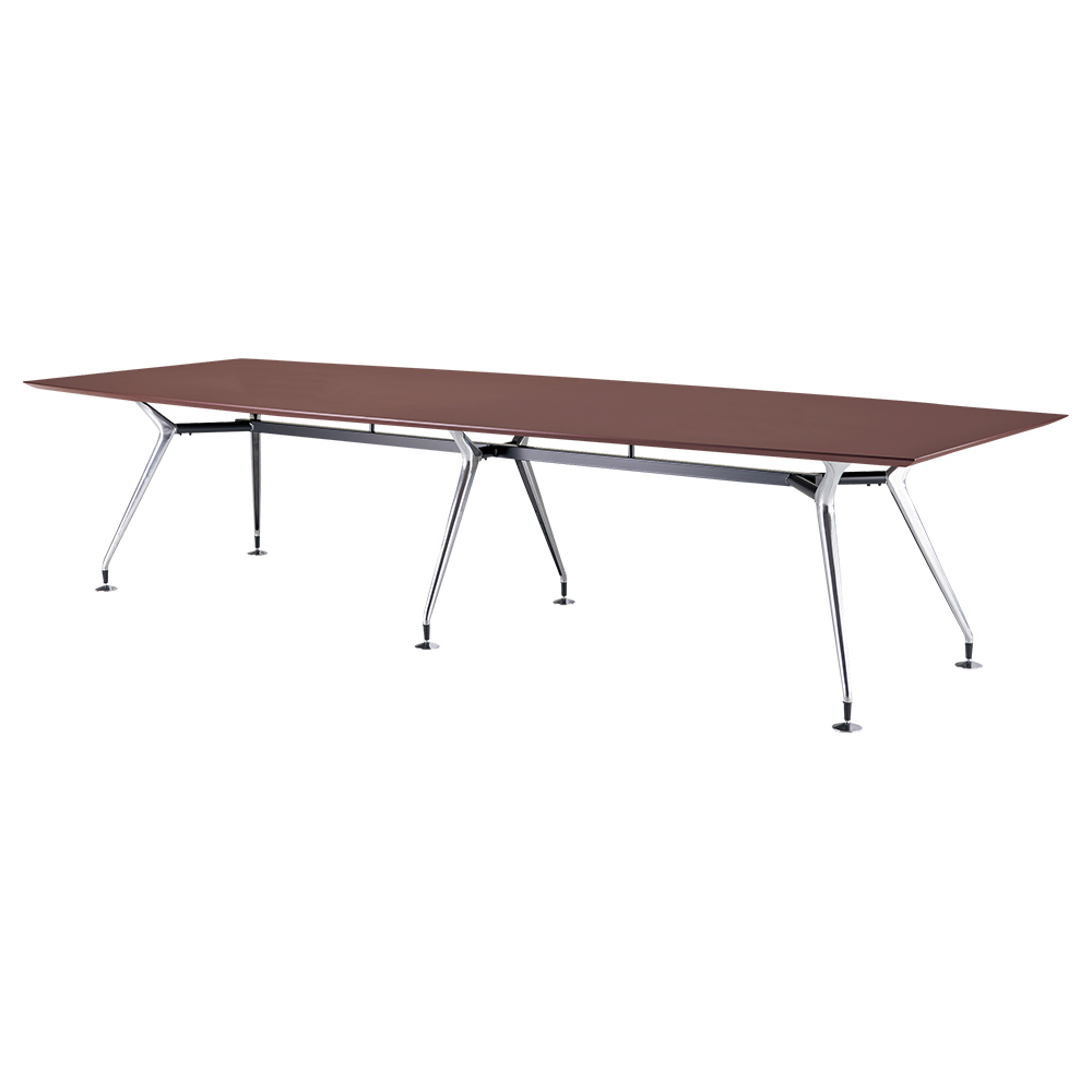 舟形天板の緩やかな曲線が落ち着きのある空間をつくる、ミドルハイクラスの国産天板ミーティングテーブルです。