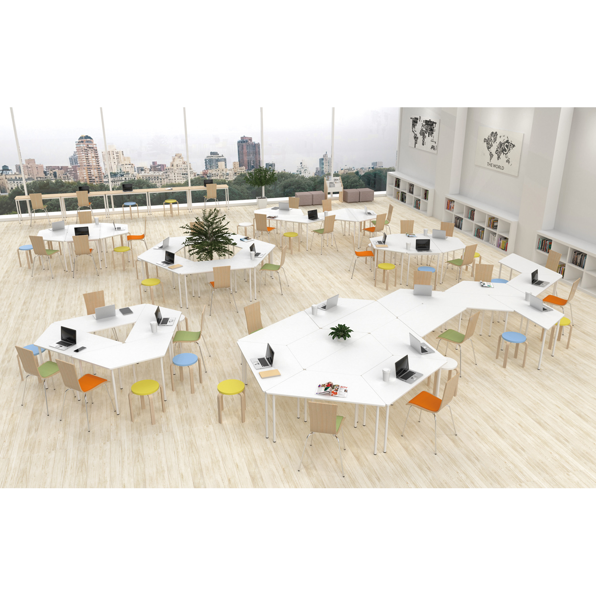 豊富なサイズと天板形状バリエーション、置き場所を選ばないシンプルなデザインにより、使用シーンに最適なレイアウトを実現します。