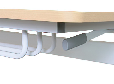 片方のレバーを引き上げながら天板を起こすことで、簡単に折り畳めますので、未使用時に場所をとりません。